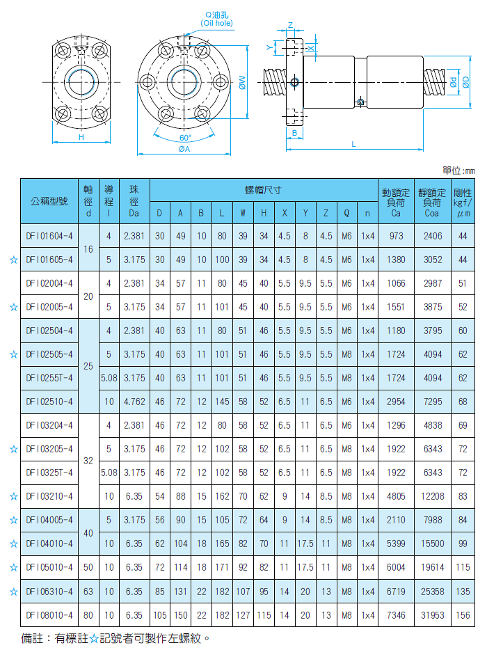 DFI滚珠丝杆副可以加与预压,由于预压力可使轴向间隙达到负值,进而得到较高的刚性(滚珠丝杠内通过给滚珠加予压力,在实际用于机械装置等时,由于滚珠的斥力可使丝母部的刚性增强)。