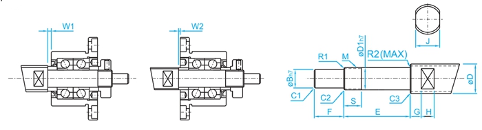 适用轴干外径 | D1 | B | E | F | M | S | J | G | H | 倒角 | 圆角 |
